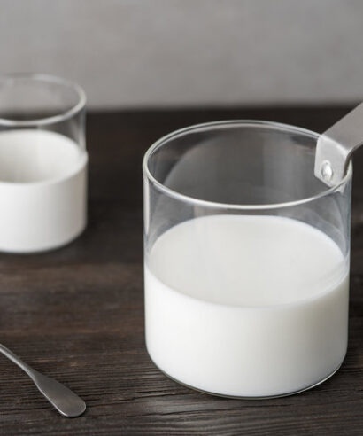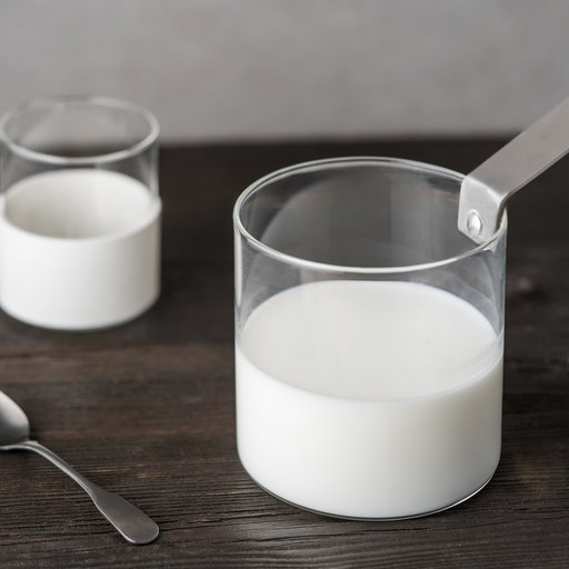 Corpo in vetro borosilicato e manico in acciaio inox. Lavabile in lavastoviglie.