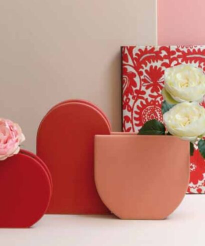 Vaso – Piatto decorativo in ceramica color ciliegia della linea “Bellopastello” di Rituali Domestici.