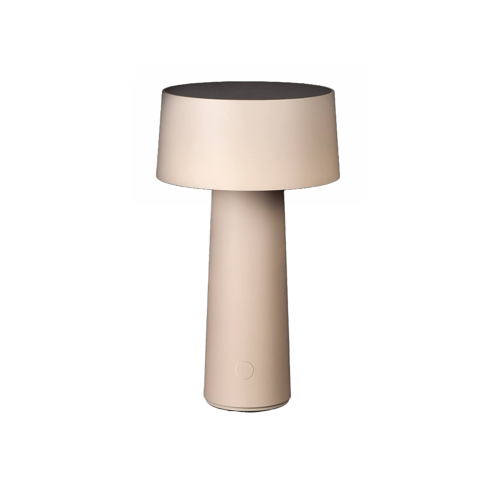 Lampada da Tavolo Mush Battery tortora di Vesta. Mush è una lampada ricaricabile con un design semplice e minimale, che riprende il concetto di lampada tecnologica, facile da spostare, ricaricabile e con autonomia di 8 ore.